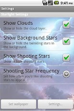 AGORA NA VENDA 0,99 dólares! Mais de um milhão de downloads! Vista a luz das estrelas pintadas à mão por Anne Paetzke. finas nuvens deriva sonhador através de uma paisagem distante, enquanto a lua brilha prata no crepúsculo. Agora suporta Galaxy Tab, Dell Streak, Saleta de cor, Nexus S, Xoom, e apenas sobre qualquer tela que você pode atirar nele. :) Esta versão possui estrelas cadentes, um fundo animado, e tela de configurações